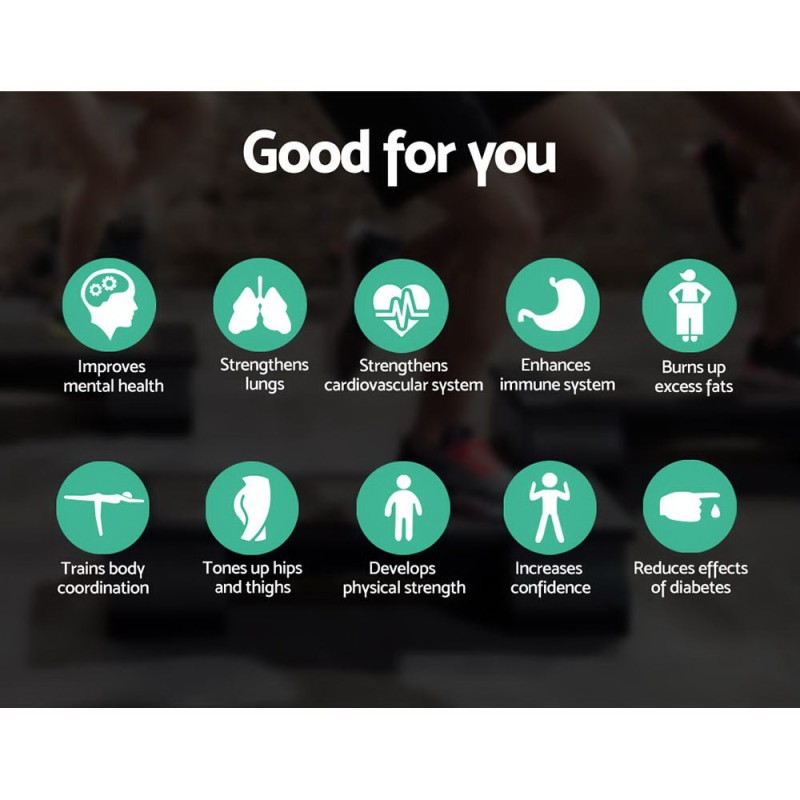 Elevate your fitness routine with the Everfit 2X Aerobic Step Riser Exercise Stepper Block. Designed to enhance your home workouts, these risers allow you to increase the height of your aerobic step in convenient 5cm increments, ensuring a versatile and challenging session every time. Perfect for improving cardiovascular health, boosting coordination, burning fat, and toning your hips and thighs, these risers are a cost-effective alternative to gym memberships. Built with non-skidding pads, they promise stability and safety, making them ideal for both home and commercial use. Transform your living space into a professional gym environment effortlessly.