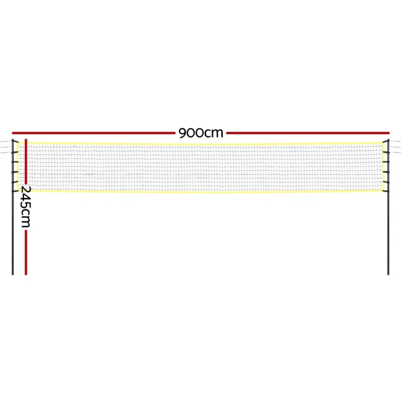 Take your game anywhere with the Everfit 9M Portable Volleyball Net Set. This versatile set features a height-adjustable, UV-resistant net for outdoor durability and is lightweight for easy transport. Quick setup lets you maximise playtime, while included volleyball, pump, and vivid yellow boundary line ensure a complete experience. Ideal for volleyball, badminton, and tennis, it's perfect for backyard fun or beach matches. Enjoy reliable stability and effortless portability with Everfit!