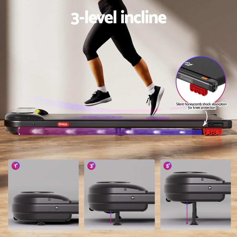 Transform your work-from-home routine with the Everfit Treadmill Electric Walking Pad. This compact under-desk treadmill slips neatly beneath most desks, helping you stay active without disrupting your workflow. With three incline levels, a spacious 400mm walking belt, and honeycomb cushioning for joint-friendly strides, it’s perfect for boosting daily movement. Track your progress via the remote or Bluetooth app, and easily move it between rooms thanks to quick-glide wheels. Arrives fully assembled—just unfold and start stepping!