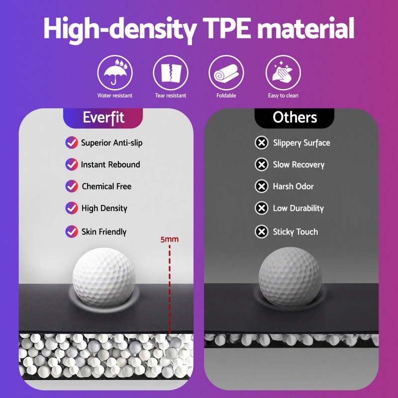 Upgrade your home gym with the Everfit Exercise Equipment Mat. Made from high density TPE, this 200cm x 90cm mat features a 5mm thickness to absorb noise and vibration, plus a double-sided anti slip texture to keep treadmills, bikes and other equipment stable on a variety of floors. Water-resistant and fade resistant, it’s lightweight for easy positioning and includes a handy storage bin for neat organisation. Simple to clean and built for regular use, it’s an ideal base for cardio and strength training at home.