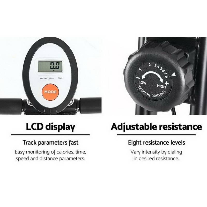 Discover the ultimate blend of convenience and performance with the Everfit Folding Exercise Bike Magnetic X-Bike. Designed for those who crave efficient, low-impact workouts, this cross trainer offers eight adjustable mechanical resistance levels to help tone every muscle. The durable powder-coated X-shaped steel frame ensures stability, while the extra wide, soft-padded seat and adjustable height make for a comfortable ride. Enjoy the peace of a silent magnetic system, workout anytime without disturbance. Track your progress with the easy-to-read LCD monitor displaying time, speed, distance, and calories.