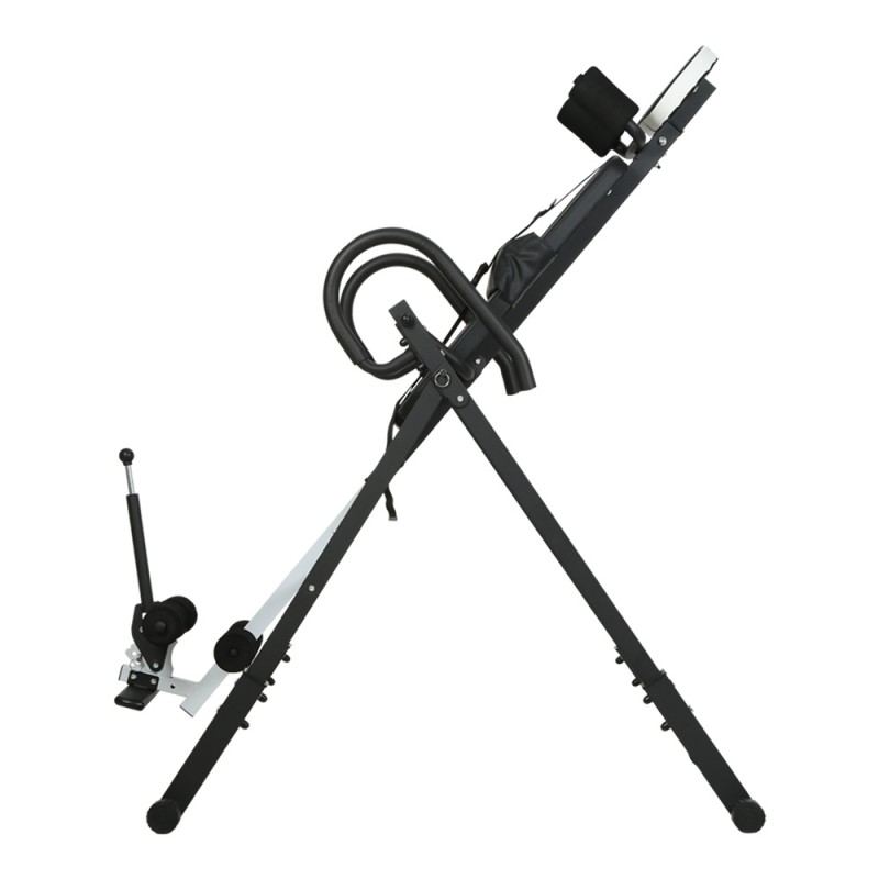 Experience relief from back pain and improve your flexibility with the Everfit Inversion Table. Designed to realign the spine, reduce nerve pressure, and relax tense muscles, this gravity inverter features an extra-wide backrest padded with thick, high-density foam for superior comfort. Adjustable inversion levels up to 180° with three locking positions, a safety belt, and locking ankle clamps ensure secure use. Crafted from rust-proof, powder-coated steel, it supports up to 120kg and suits users from 130cm to 188cm tall. Its foldable design and non-slip feet make it perfect for home gyms.