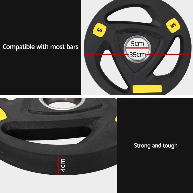 Enhance your strength training with the Everfit Weight Plate. Crafted from heavy-duty cast iron and encased in a durable rubber coating, this 5kg plate offers triple grip hand holds for easy handling and versatility. Compatible with most bars and perfect for dumbbells, barbells, or solo use, it's ideal for weight loss, muscle building, endurance, and cardiovascular workouts. Simple to use and built to last, Everfit helps you achieve your fitness goals, whether you're a beginner or seasoned lifter.