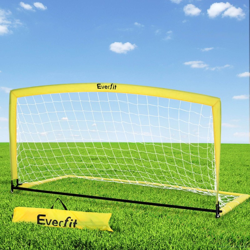 Experience the thrill of the game anywhere with the Everfit 2m Portable Football Soccer Net. Designed for enthusiasts of the beautiful game, this portable goal is perfect for practising free kicks and penalty shots with ease. Featuring a robust powder-coated steel frame and a high-density Dacron net, it guarantees durability and resilience, while the included four ground stakes ensure stability on any surface. Lightweight and easy to transport, thanks to the included carry bag, this goal is ideal for spontaneous matches or training sessions. Take your skills to the next level and play like a pro with Everfit!