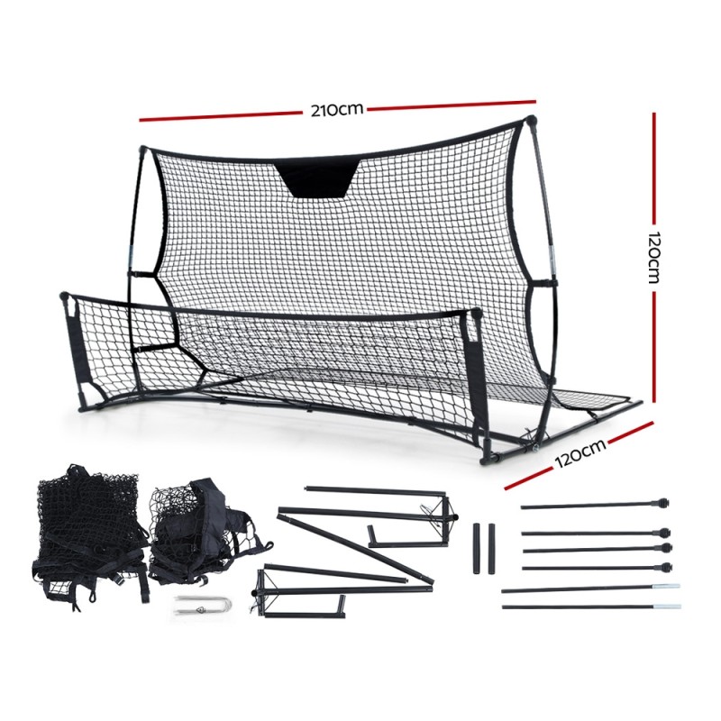 Unleash your soccer potential with the Everfit 2.1m Portable Soccer Rebounder Net. Designed for the passionate player, this versatile training gear is perfect for honing your skills in passing, receiving, heading, and more. Built with a robust, powder-coated steel frame that boasts 40% more steel for enhanced durability, and a high-density PE net, this rebounder simulates real game scenarios. Its lightweight design and quick setup make it ideal for on-the-go training. Securely anchored with four ground stakes, it ensures stability even during intense sessions. Carry it effortlessly with the included bonus carry bag, and take your game anywhere.