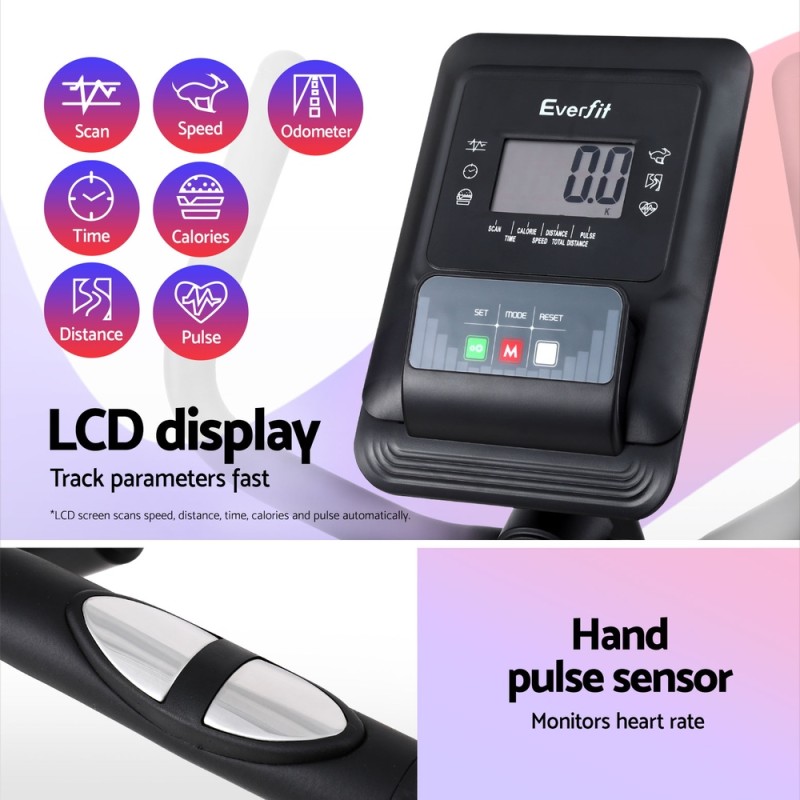 Stay active and fit with the Everfit Recumbent Exercise Bike, designed for a smooth and enjoyable workout experience. Its industrial-strength frame and 6kg flywheel ensure stability and durability, while the silent magnetic system provides a seamless, noise-free ride. With eight adjustable resistance levels, you can customise your workout intensity. The ergonomic design features lumbar seat support and adjustable seating for tailored comfort, making it perfect for all fitness levels and an excellent addition to any home gym.