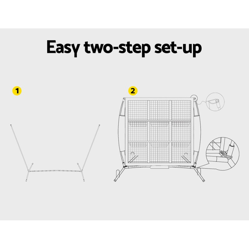 Take your training to the next level with the Everfit Soccer Net Baseball Pitching Football Goal Training Aid. Lightweight and portable, this pitching net features 9 target zones for precision practise and is built with a durable polyester mesh and sturdy metal and fibreglass frame. Suitable for both indoor and outdoor use, it’s perfect for athletes of all ages and abilities seeking to sharpen their accuracy. Quick to set up, stable with ground stakes, and easy to transport with the included carry bag, Everfit lets you improve your game anywhere, anytime.