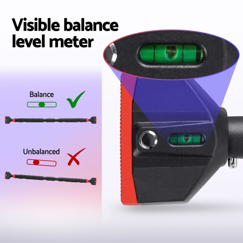 Transform your home into a versatile fitness studio with the Everfit Telescopic Doorway Pull-up Bar. Adjustable for doorways between 90-125cm, this sturdy bar features a robust weight capacity of 300kg and ensures safe, slip-free workouts thanks to its double safety lock. The built-in spirit level simplifies installation, guaranteeing a straight, secure fit. Ideal for pull-ups, chin-ups, sit-ups, and more, this pull-up bar helps you achieve your fitness goals without stepping outside your home.