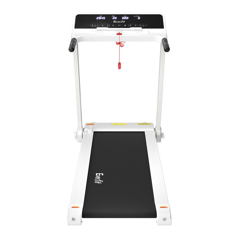 Take your fitness journey to the next level with the Everfit Treadmill Electric Home Gym Fitness Exercise Knob, Foldable 420mm in White. Featuring a sturdy powder-coated steel frame, 12 pre-set training programs, and a user-friendly digital LCD, this treadmill supports speeds from 1km/h to 14km/h. Enjoy a comfortable, safe run with its anti-slip belt and soft-grip handlebar. Bluetooth APP, tablet holder, and foldable design make workouts enjoyable and storage effortless, perfect for any home gym.