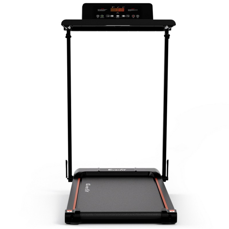 Get fit without stepping outside with the Everfit Treadmill Electric Walking Pad. Perfect for home offices and gyms, its innovative design includes a detachable desktop for a seamless "work and walk" experience. Transition to intense workouts by removing the desktop, utilising the powerful, energy-efficient motor and shock-absorption belt. Customise your routine with 12 preset programs and a 2-level manual incline. Safety features include a safety key and a foldable handle, while Bluetooth connectivity helps track progress. With no assembly required and smooth wheels for easy storage, this treadmill is the ultimate home fitness solution.