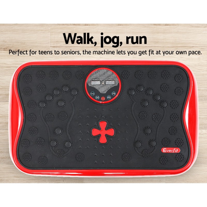 Transform your fitness routine with the Everfit Vibration Machine Platform Vibrator. Perfect for those with busy schedules, this innovative machine offers a full-body workout in just 15 minutes, equivalent to longer sessions of swimming, yoga, and jogging. Easy to operate with digital and remote controls, it features a point-massage surface for added reflexology benefits. The durable dual-belt motor supports up to 120kg, making it ideal for all ages. Enhance your workout with included resistance bands. Enjoy efficient, fun fitness right at home with this vibrant red machine.