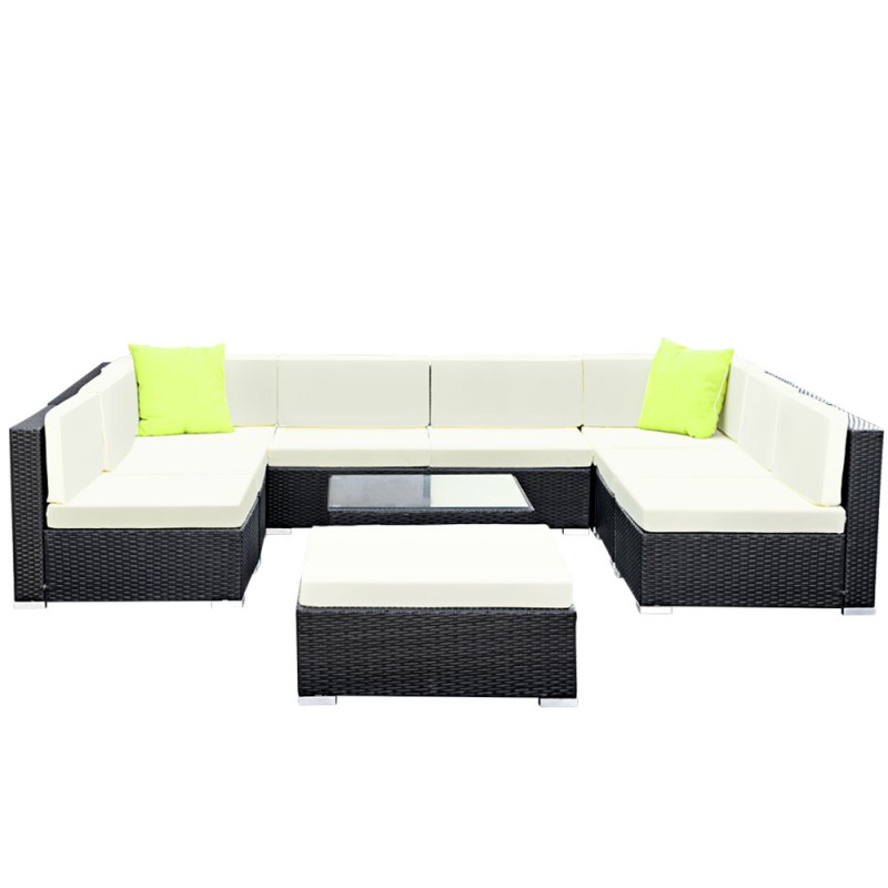 Experience luxury and comfort with the Gardeon 10-Piece Outdoor Sofa Set. Designed for both indoor and outdoor use, this set boasts a durable, heavy-duty aluminium frame and premium UV-resistant PE wicker. The 5mm thick tempered glass table top ensures safety, while the 8cm high-density foam cushions promise relaxation. With removable, water-resistant covers, maintenance is a breeze. A bonus storage cover is included for convenience. Simple assembly required. Comes with a 1-year warranty.