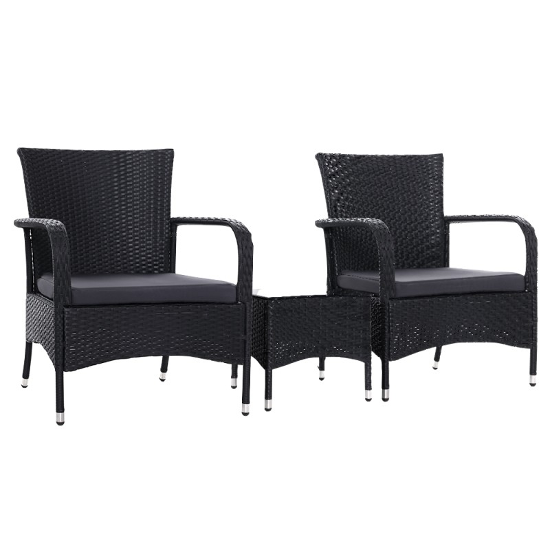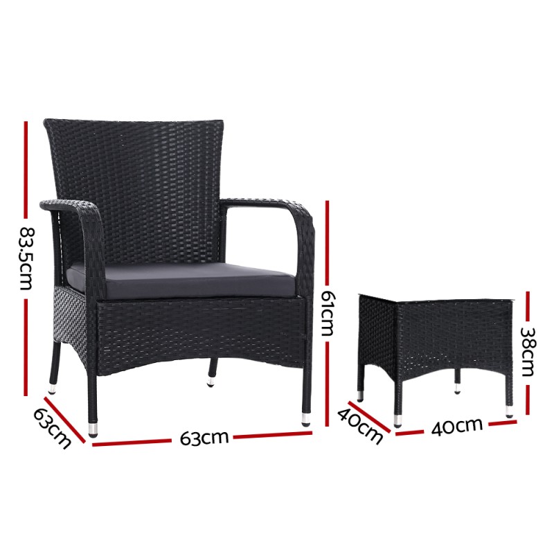 Experience outdoor elegance with the Gardeon 3PC Outdoor Bistro Set. This chic set includes two contoured chairs and a stylish table, crafted from UV-resistant PE wicker over a sturdy powder-coated steel frame. Enjoy comfort with spacious seating and plush 5cm thick cushions, while the 5mm tempered glass tabletop and removable covers ensure easy maintenance. Perfect for patios, decks, or even indoors, this set is where style meets functionality.