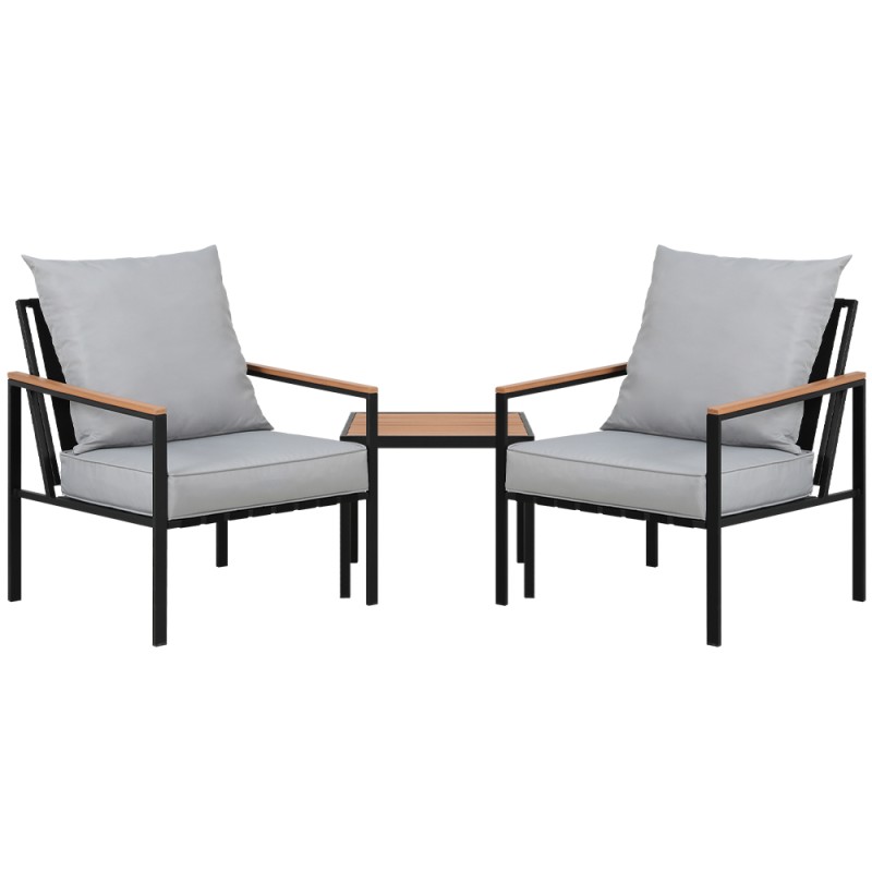 Experience outdoor luxury with the Gardeon 3PC Outdoor Furniture Bistro Set. This elegant ensemble includes two single chairs and a coffee table, crafted from rust-resistant powder-coated steel. The set features water and UV-resistant cushions with plush 8cm foam, ensuring comfort. Easy to assemble, it boasts non-slip feet and a durable Polywood tabletop. Maintenance is a breeze with wipe-clean surfaces and removable cushion covers. Elevate your outdoor living with Gardeon, backed by a 1-year warranty.
