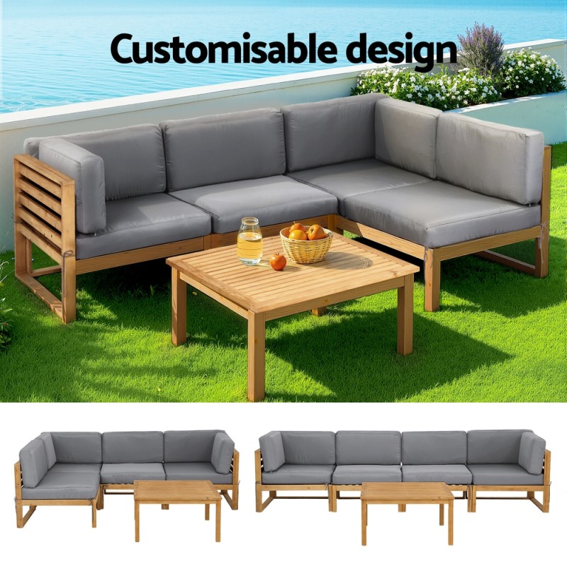 Experience the ultimate in outdoor relaxation with the Gardeon 4-Piece Outdoor Sofa Set. Crafted from durable natural wood, this elegant ensemble features two single sofas, two armchairs, and a spacious slatted coffee table perfect for entertaining. Enjoy plush, 13cm thick high-density cushions with water and UV-resistant covers, ensuring lasting comfort and easy maintenance. Easily configure your perfect outdoor setting and make the most of beautiful weather with this stylish, easy-to-assemble lounge set.
