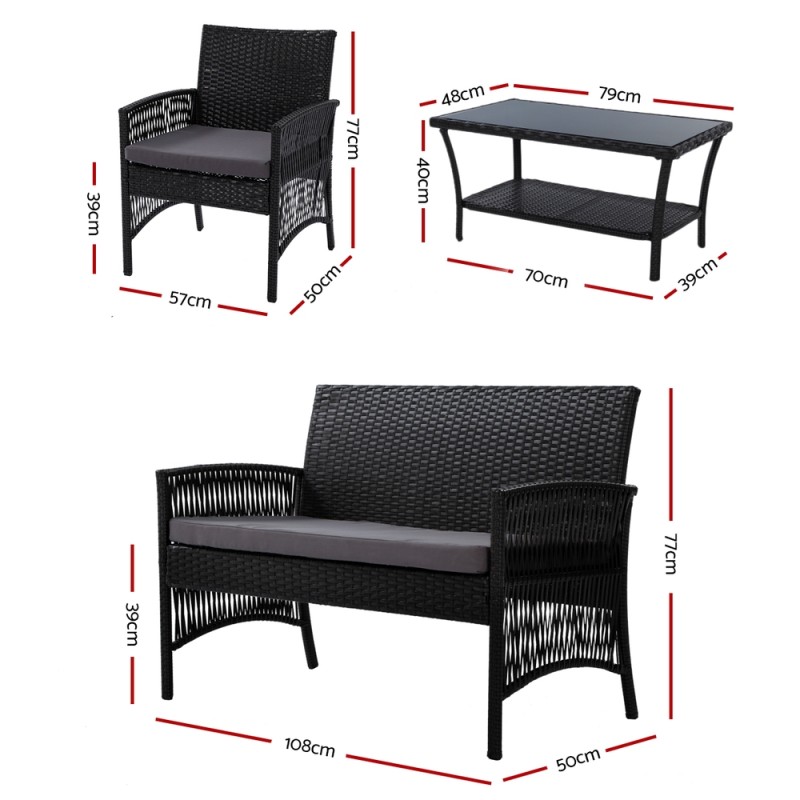 Inspired by the elegance of a musical masterpiece, the Gardeon 4PCS Outdoor Sofa Set transforms your space with its charming Harp design. Meticulously crafted with UV-resistant PE wicker and a galvanised steel frame, this set promises durability and style. It includes plush 5cm thick cushions with removable covers for easy maintenance. The ensemble features a matching coffee table with a 5mm tempered glass top, perfect for both indoor and outdoor settings.