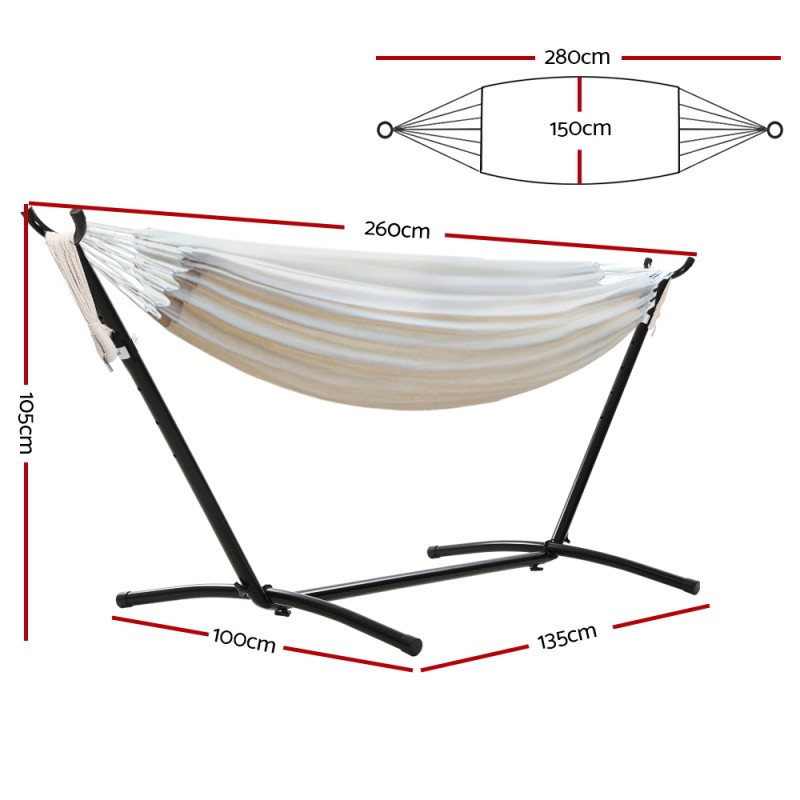 Experience ultimate relaxation with the Gardeon Hammock Bed Camping Chair. Perfect for your patio, garden, or indoors, this hammock features a plush 100% cotton fabric that ensures comfort and ventilation. Its robust stand, crafted from heavy-duty, powder-coated steel, promises durability against the elements. With an easy tool-free setup, enjoy six adjustable height levels. Whether it's for lounging or napping, the Gardeon Hammock is your go-to for versatile comfort.