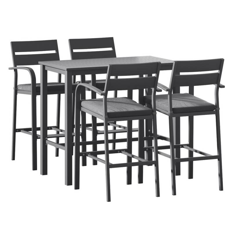 Elevate your outdoor entertaining with the Gardeon Outdoor Bar Set. This stylish 5-piece patio set features durable aluminium construction and weather-resistant design, perfect for any outdoor space. The stools come with removable, extra-thick cushions for comfort, while the integrated design offers space-saving benefits. Ideal for backyards, business patios, or holiday homes, this set is both functional and inviting. Enjoy peace of mind with a 1-year warranty.