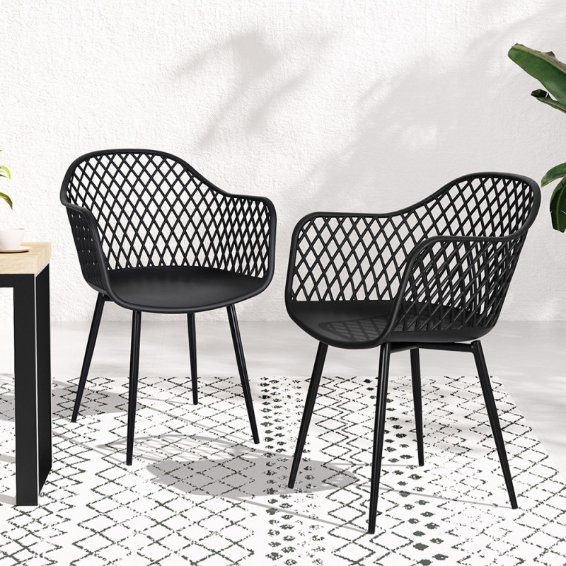 Elevate your outdoor living space with Gardeon's 4PC Outdoor Dining Chairs. Crafted from durable, water and UV-resistant polypropylene, these chairs boast a sleek black design that complements any décor. The ventilated backrest and curved armrests offer comfort and style, while the lightweight build allows for easy portability and storage. Perfect for both indoor and outdoor settings, these chairs are easy to assemble and maintain, ensuring they remain a staple in your home for years. Enjoy peace of mind with a 1-year warranty.
