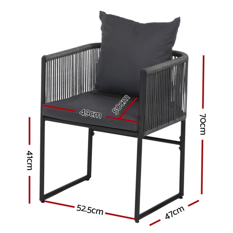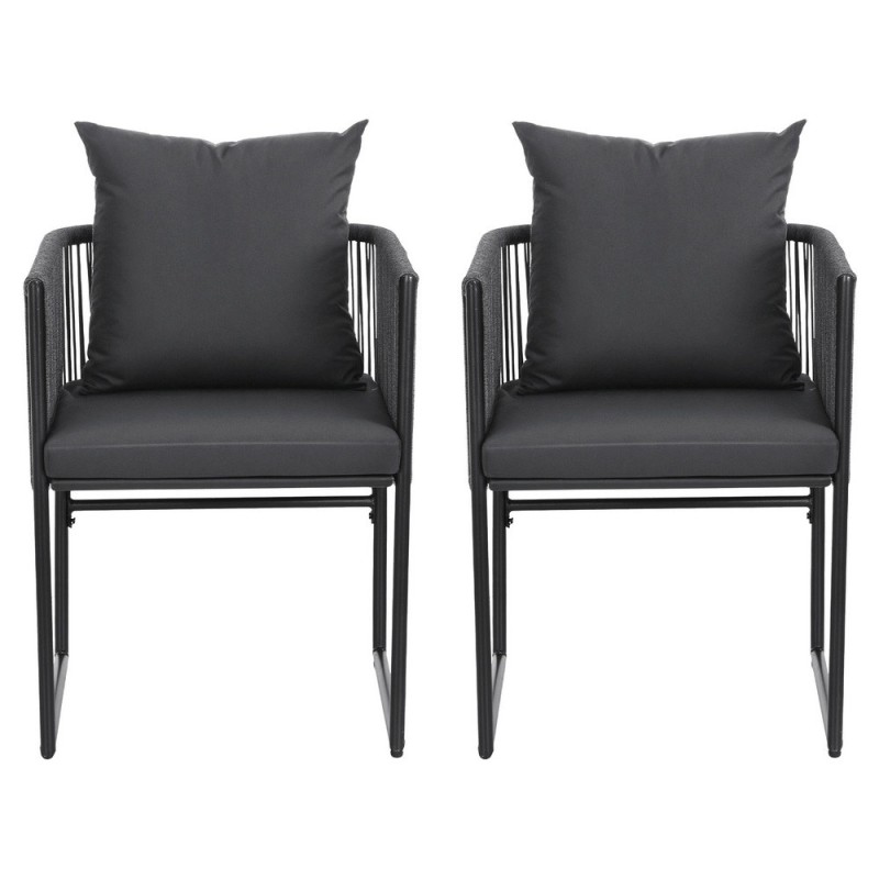 Elevate your outdoor or indoor lounging experience with the Gardeon 2PC Outdoor Dining Chairs. Designed with contemporary elegance, these chairs feature a sturdy powder-coated steel frame and a cocooned seat crafted from UV-resistant, weatherproof hand-woven rope, ensuring durability and comfort. Non-slip feet offer stability, while the removable and machine-washable cushions simplify maintenance. With easy assembly, these minimalist chairs are perfect for pairing with bistro sets or dining tables, enhancing any space with modern sophistication. Ideal for gardens, patios, or indoor areas, Gardeon chairs promise year-round style and comfort.