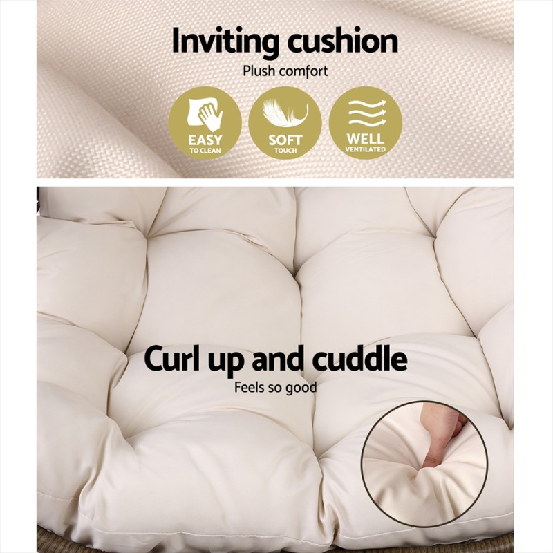 Experience ultimate relaxation with the Gardeon Outdoor Egg Swing Chair. Meticulously handcrafted with 100% UV-resistant wicker, this elegant piece offers exotic appeal and unmatched durability. The dual-pole support ensures stability, while the plush, detachable cushion provides comfort. Its 360° rotatable design and anti-rust frame make it perfect for any weather. With easy assembly and a weight capacity of 150kg, it's ideal for leisure seekers.