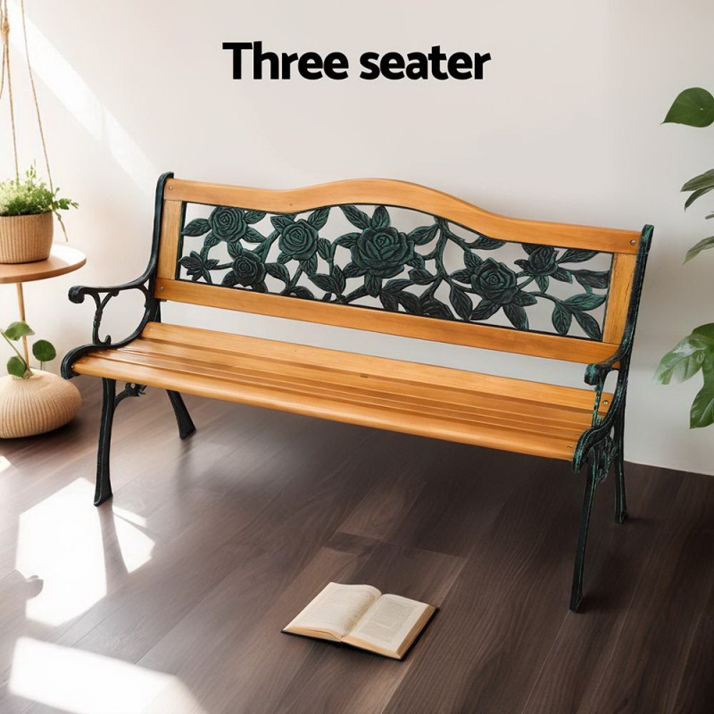 Discover the perfect blend of rustic charm and functionality with the Gardeon Outdoor Garden Bench. Ideal for gardens, patios, and indoor spaces, this 126cm bench comfortably seats three. Crafted with a robust cast iron frame, it features a rose-patterned plastic backrest and a hardwood seat. Designed for comfort and style, its weather-resistant materials and smooth finish ensure long-lasting beauty. Easy to assemble, it promises to transform any space into a welcoming retreat.