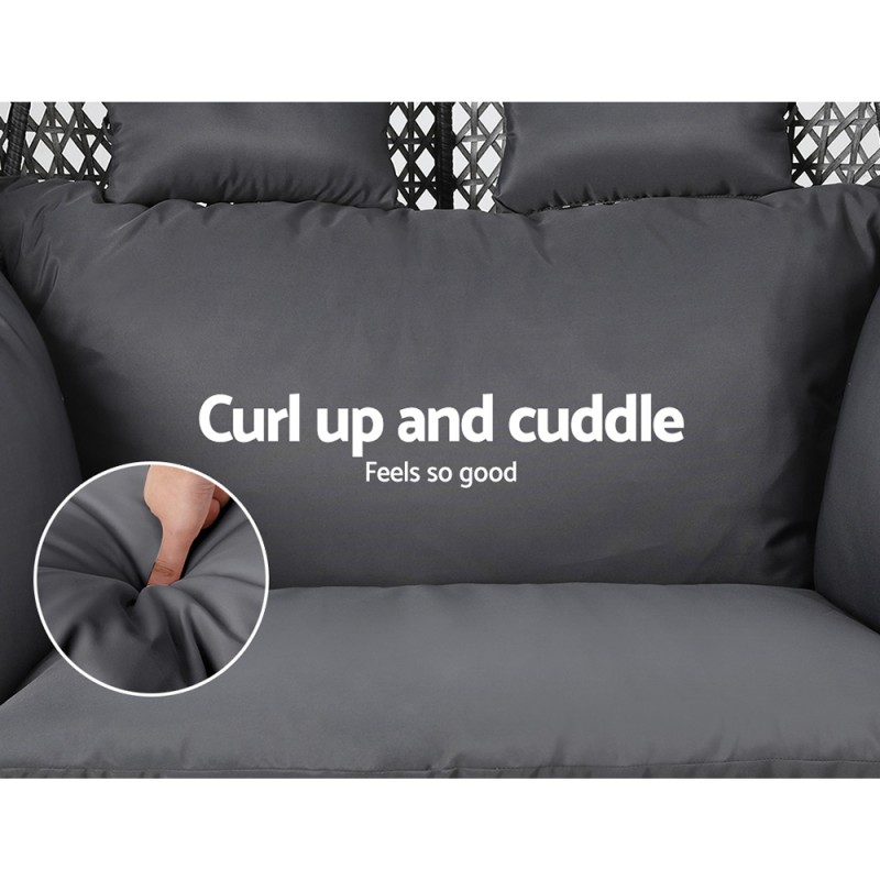 Discover the epitome of relaxation with the Gardeon Outdoor Swing Chair. Known as the hanging egg chair, this stunning piece is crafted from 100% hand-woven rattan, bringing a touch of exotic elegance to any setting, whether it's your balcony, poolside, or indoor living space. Designed for two, it boasts a weight capacity of 240kg and features a durable, anti-rust frame with a twin pole design for enhanced stability. The soft, removable cushion provides unparalleled comfort, inviting you to unwind and enjoy life's leisurely moments. Easy to assemble, this chair is your perfect summer retreat.