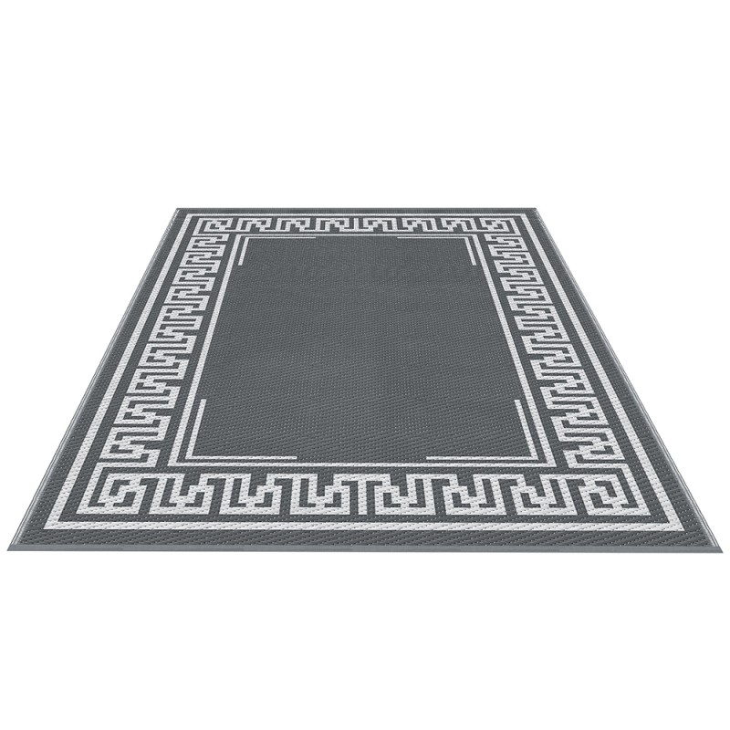 Transform your outdoor living area with the Gardeon Outdoor Rug, a versatile accessory designed for style and durability. Measuring 152x244cm, this large, reversible area mat features a chic Greek Key pattern on both sides, allowing for an instant patio refresh. Crafted from high-quality polypropylene with UV protection and heat-treated edges, it stands up to the elements while remaining soft and comfortable underfoot. Lightweight and portable, it's ideal for decks, pools, camping, and beach outings. Effortlessly clean with just a hose, this rug marries practicality with boho charm, perfect for any outdoor adventure.