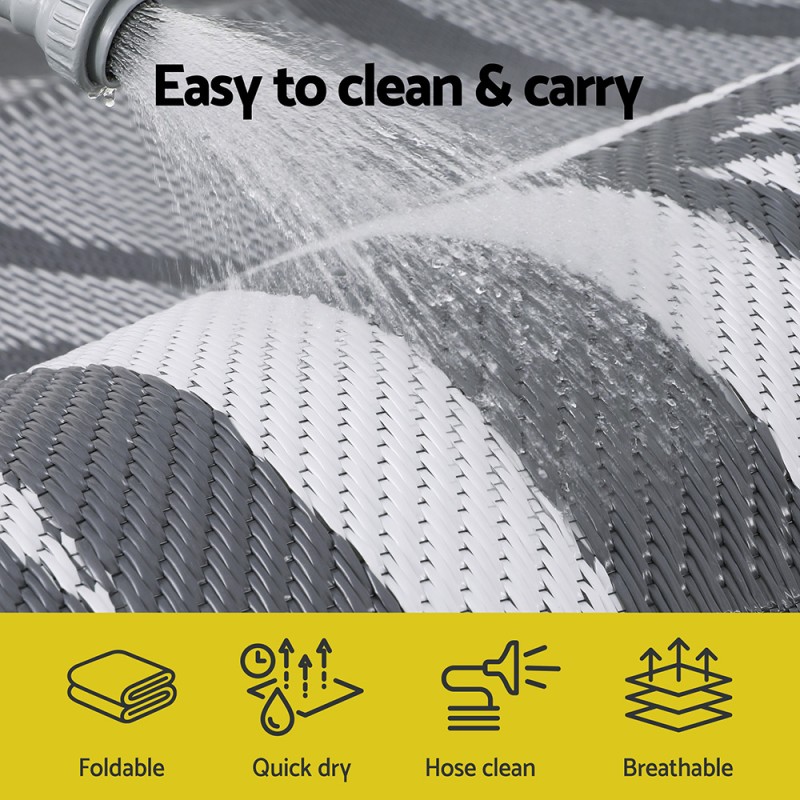 Transform your outdoor space with the versatile Gardeon Outdoor Rugs. Measuring 152x244cm, this reversible area mat offers a quick style upgrade with its dual-pattern design. Made from premium polypropylene, it boasts a UV and heat-resistant coating, ensuring vibrant colours and durability against the elements. The lightweight and portable design makes it ideal for decks, pools, camping trips, or beach outings. Easy to clean with just a hose or cloth, it features a non-slip grid backing for added safety and efficient drainage. Perfect for adding a touch of boho charm to your garden, patio, or RV adventures.