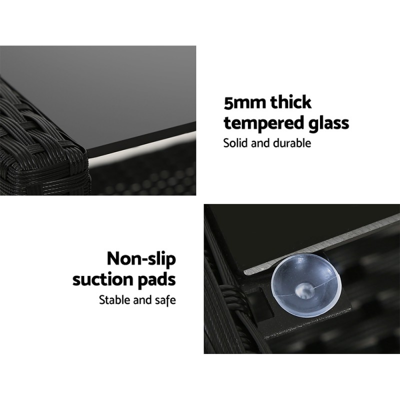 Elevate your outdoor or indoor space with the Gardeon Outdoor Sofa Set. This 4-piece ensemble features two armchairs, a two-seater, and a sleek coffee table with a 5mm tempered glass top. Handwoven UV-resistant PE wicker and a sturdy galvanised steel frame ensure durability and style. Enjoy plush comfort with thick, removable, and washable cushions. With easy assembly, this weather-resistant set is perfect for any environment, offering a chic and lasting addition to your decor.