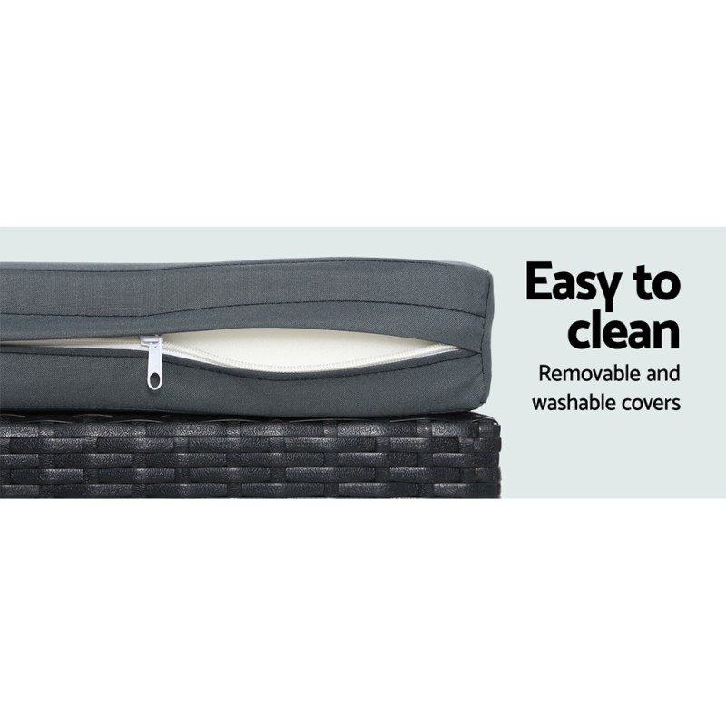 - Removable seat cushions and pillows