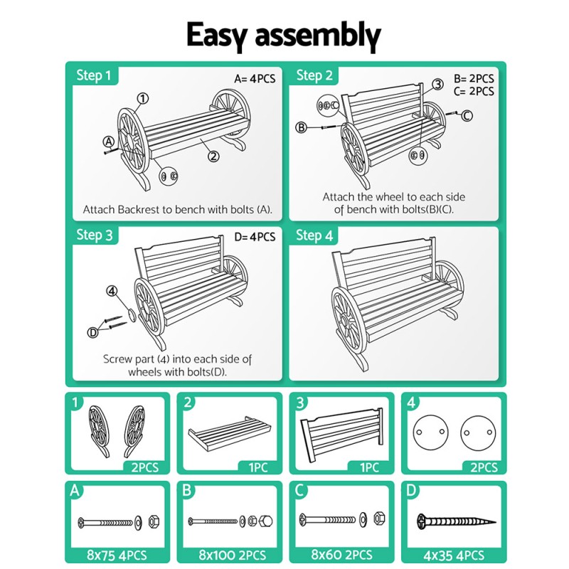 Embrace rustic charm with the Gardeon Outdoor Garden Bench. Crafted from weather-resistant Canadian Fir wood, this 3-seater features wagon-wheel armrests and a burnt wood finish for a touch of the wild west. Comfortable and durable, it supports up to 300kg and resists UV rays, rot, and pests. Ideal for any garden, it's easy to assemble and maintain, making it perfect for enjoying the outdoors under the Australian sun.
