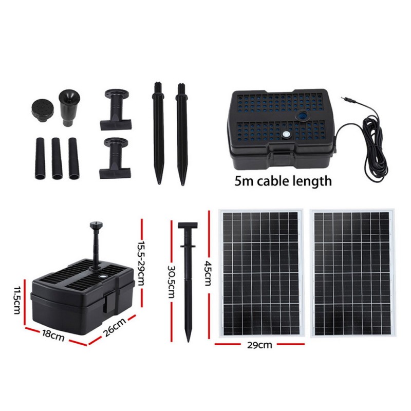 Harness the power of the sun with the Gardeon Solar Submersible Water Pond Fountain Pump. Designed for both indoor and outdoor use, this energy-efficient fountain pump operates entirely on direct sunlight, delivering a powerful 1,190L/H flow with durable DC brushless technology. The adjustable height, 5m long cable, customised spray options, and easy installation make it perfect for creating a stunning water feature in any space. Enjoy hassle-free maintenance and eco-friendly performance for your pond or garden.