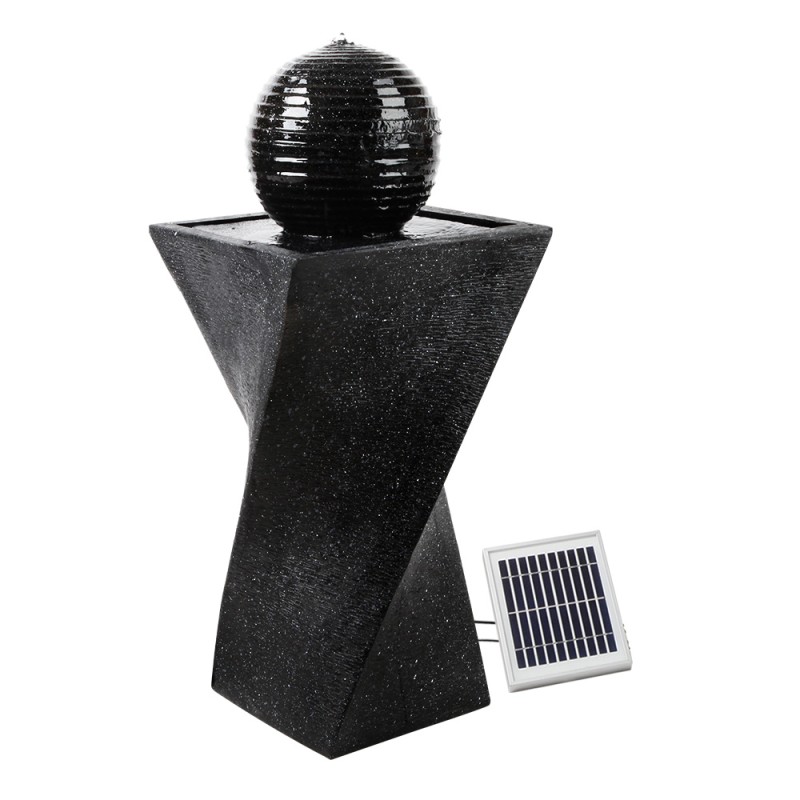 Enhance your garden with the Gardeon Solar Water Feature Twisted Fountain. This elegant black fountain, crafted from durable polyresin, features a twist design with captivating LED lights for nighttime allure. Solar-powered for eco-friendly operation, it includes a rechargeable Lithium battery, water pump, and easy installation. Ideal for indoor or outdoor use, it promises a hassle-free centrepiece delivered to your doorstep. Note: Never operate the pump dry to avoid damage.