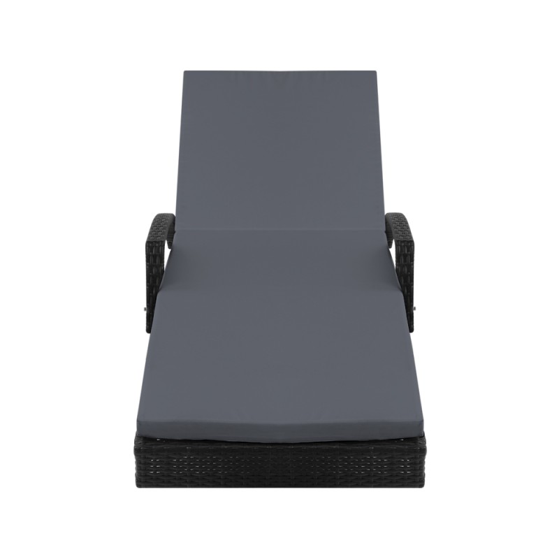 Experience ultimate relaxation with the Gardeon Sun Lounge Wicker Lounger. Crafted for durability and style, this lounger features a UV-resistant and anti-rust aluminium frame with a sleek black finish. The water-resistant grey cushion, adjustable backrest, and reversible armrests offer customised comfort. Perfect for sunbathing or unwinding, its slender profile fits any outdoor space. Enjoy easy maintenance with a removable, washable cushion cover. Relish endless summer moments with Gardeon.