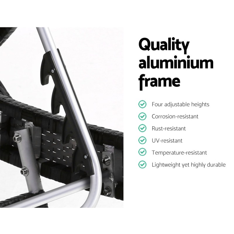 Experience ultimate relaxation with the Gardeon Sun Lounge Wicker Lounger. Designed for comfort and durability, this outdoor beach chair features a UV-resistant frame and water-resistant cushion for enduring summer enjoyment. Its sleek black aluminium and PE wicker frame supports up to 120kg, with a 13cm thick grey headrest and four adjustable backrest settings for personalised comfort. Easy assembly and a removable, washable cushion cover ensure convenience. Unwind in style and make every sunny moment count!
