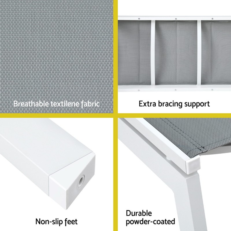 Embrace sunny days with the Gardeon Sun Lounger, crafted from breathable textilene fabric on a durable powder-coated aluminium frame. This weather-resistant lounger offers a 150kg weight capacity and features non-slip feet and extra bracing for stability. Enjoy ultimate comfort with 5 adjustable backrest settings and smooth wheels for easy mobility. Perfect for the beach, poolside, or indoors, its simple assembly ensures you’ll be relaxing in no time. Comes with a 1-year warranty.