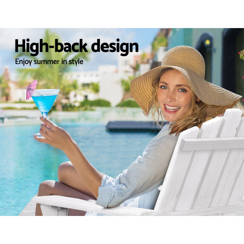 Experience timeless relaxation with the Gardeon Adirondack Outdoor Chair. Crafted from durable Fir wood and finished with eco-friendly white paint, this chair offers UV and weather resistance. Its high back, extra-wide armrests, and smooth edges ensure comfort and style. With a 150kg weight capacity and rust-resistant hardware, it's perfect for any outdoor setting. Simple assembly required.