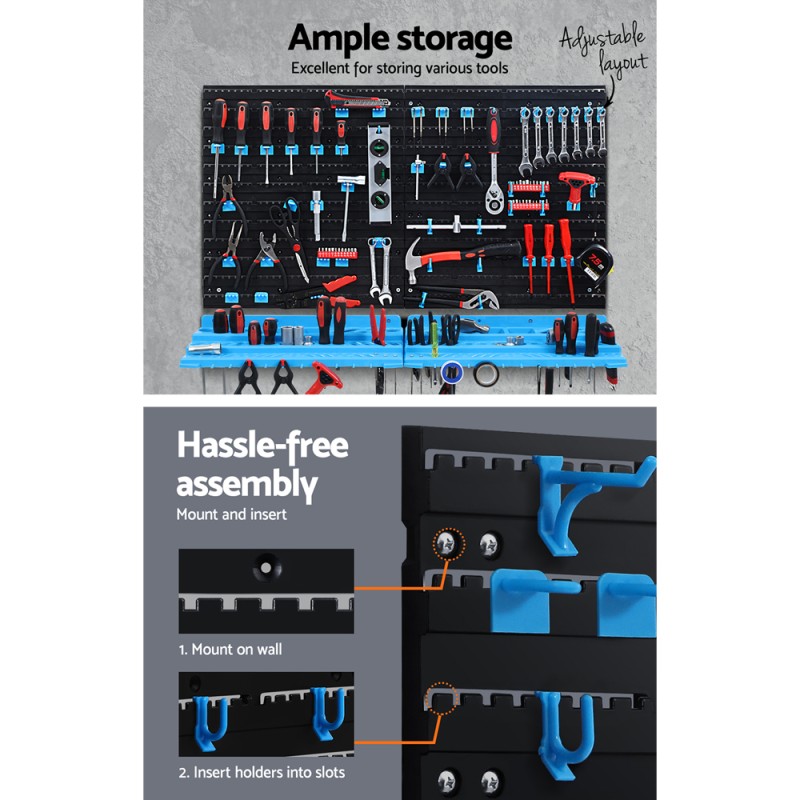 Transform your cluttered garage into an organised haven with the Giantz 108 Storage Bin Rack. Perfect for maximizing space, this wall-mounted tool storage solution features four ultra-durable peg boards with an upgraded mounting slot design for enhanced stability. Easily customise your setup with 100 removable tool holders and four shelves, accommodating your expanding collection. Made from robust, impact-resistant plastic, it supports up to 62kg per shelf. Choose Giantz for efficient and flexible workshop storage!