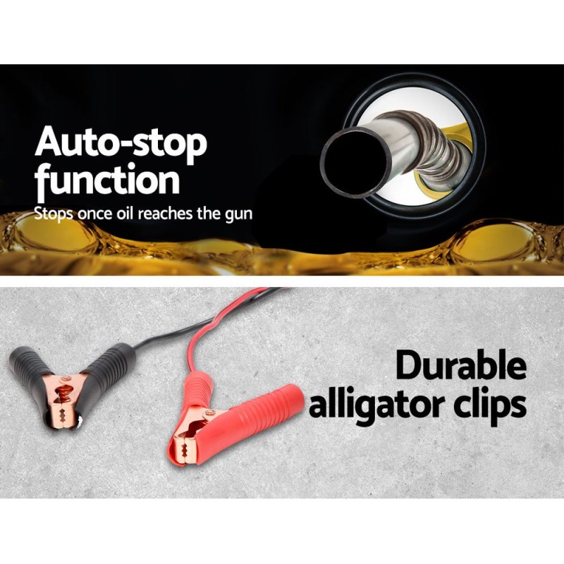 Introducing the Giantz 12V Diesel Transfer Pump Extractor - your go-to solution for efficient fluid transfer. Equipped with a robust 180W motor, this pump effortlessly dispenses diesel, oil, and water at a swift 40 litres per minute. Its high-performance nozzle features a 3-stage trigger lock for seamless control, while the auto-stop function enhances safety. Designed for both home and commercial use, it comes with clear, reinforced hoses, an ultra-fine filter, and premium alligator clips for easy battery connection. Ideal for various machinery and storage tanks, this pump ensures clean, fast, and accurate operation.