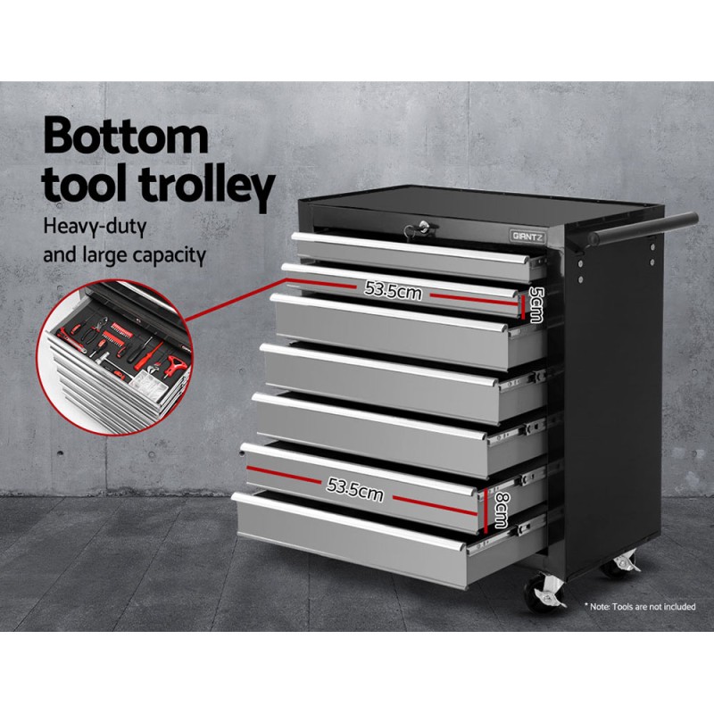 Organise and safeguard your tools with the Giantz 17 Drawer Tool Box Cabinet Chest Trolley, a must-have for any serious workshop. Crafted from durable steel with a sleek powder-coated finish, this robust storage solution features 17 fully lockable drawers with ball-bearing slides for smooth operation. The flexible design allows you to separate the chest from the trolley, while non-slip liners protect your tools. Mounted on omnidirectional castors with lockable front wheels, it offers easy mobility and stable positioning.