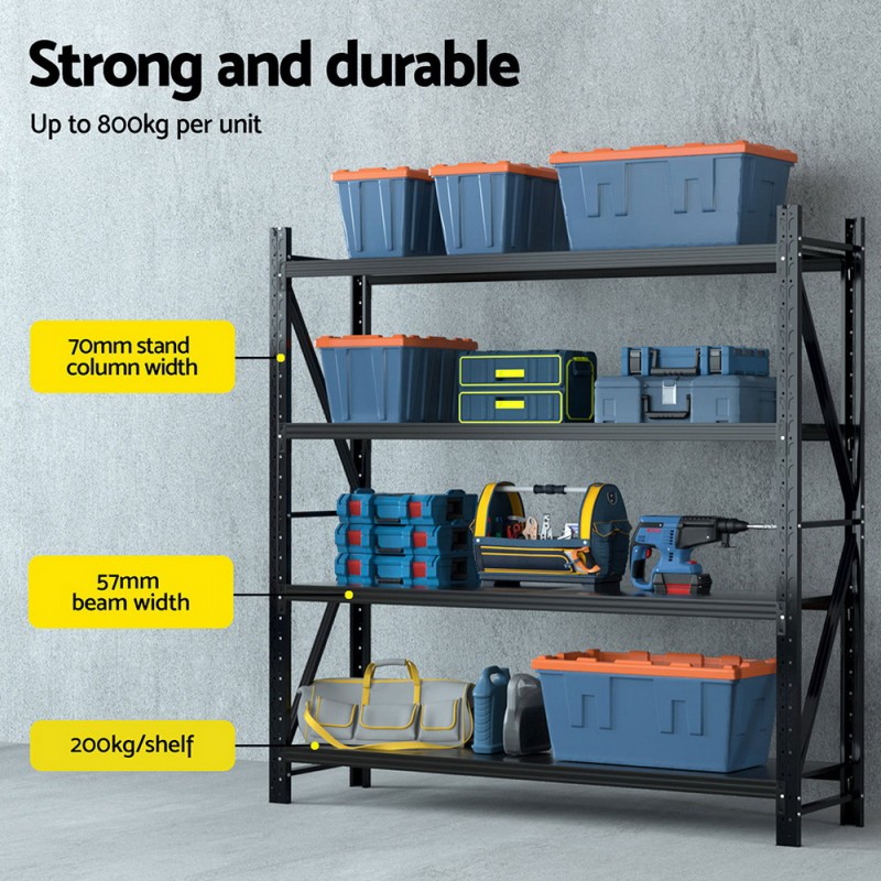 Transform your storage space with the Giantz 2Mx2M Warehouse Shelving Garage Rack. Engineered from industrial-strength steel, this robust rack supports a colossal 200kg per shelf, perfect for bulky items. Its Z-bracing ensures stability, while adjustable shelves offer customisable storage. A rust-resistant finish keeps it looking sharp for years. Ideal for garages, workshops, or basements, this rack is your ultimate heavy-duty storage solution. Easy assembly and a 1-year warranty included.