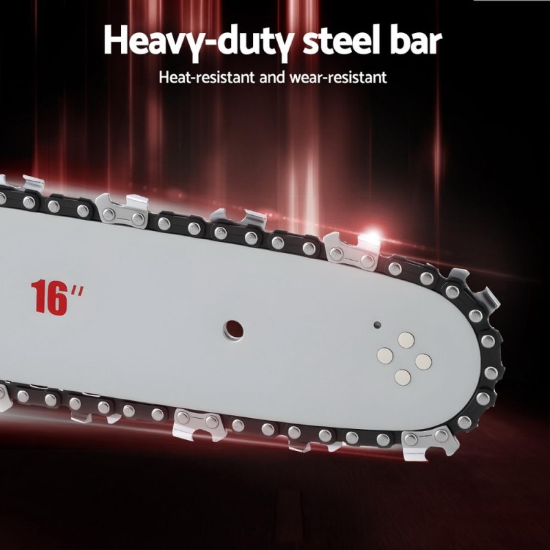 The Giantz 42CC Petrol Chainsaw with a 16'' bar is designed for both home users and professional landscapers seeking power and precision. Its robust steel body houses a high-performance 42CC engine, delivering, 1300W of smooth cutting power. The 6-teeth 3/8-inch sprocket and 16-inch sprocket nose guide bar ensure clean, efficient cuts through wood, branches, and logs. Lightweight and well-balanced, it minimises user fatigue, and with large fuel and oil tanks, it supports longer cutting sessions. Ready to use out of the box with a quick-start system, it's the ideal tool for any serious gardening or DIY project.