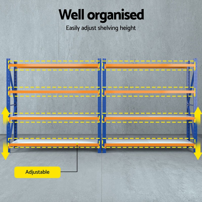 Elevate your storage game with the Giantz 4Mx2M Garage Shelving Warehouse Rack in Orange. Engineered from industrial-strength steel with a robust Z-bracing structure, each shelf supports up to 200kg, ideal for heavy-duty storage in garages, workshops, or warehouses. The rust-resistant finish ensures long-term durability, while adjustable shelves and 16 safety plugs offer customised, secure organisation. Practical, tough, and reliable, Giantz is your solution for efficient storage.