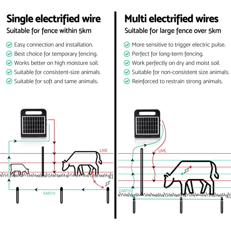 Keep your livestock safe and secure with the Giantz 5km Solar Electric Fence Energiser. Perfect for farms and suburban properties, this compact, water-resistant energiser delivers reliable, low-maintenance perimetre protection. Its solar-powered design ensures continuous operation, while a safe pulse system protects animals from harm. With quick installation and robust versatility, Giantz makes property management simple and effective, so you can focus on what matters most.