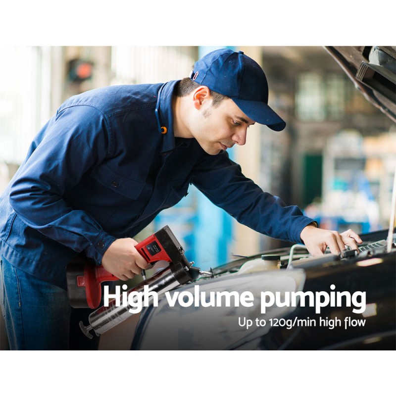 The Giantz Grease Gun Cordless 20V is your ultimate solution for efficient and precise lubrication in various machines and vehicles. Featuring a robust motor that delivers up to 10,000psi and a high-volume pumping rate of 120g/min, this grease gun ensures maximum pressure and versatility. Its 450g aluminium cartridge and flexible 76cm hose make it ideal for tackling hard-to-reach fittings. Designed for convenience, it includes two rechargeable batteries, a durable storage case, and a practical carry strap for easy transportation. With an easy-to-use design, the Giantz Grease Gun is perfect for both professional and home use.