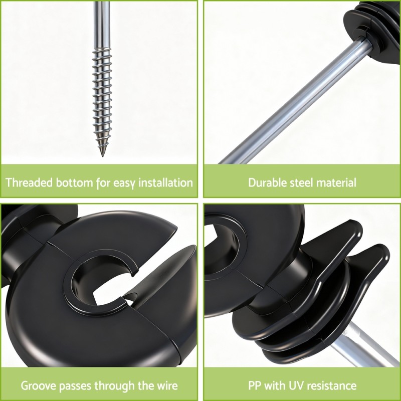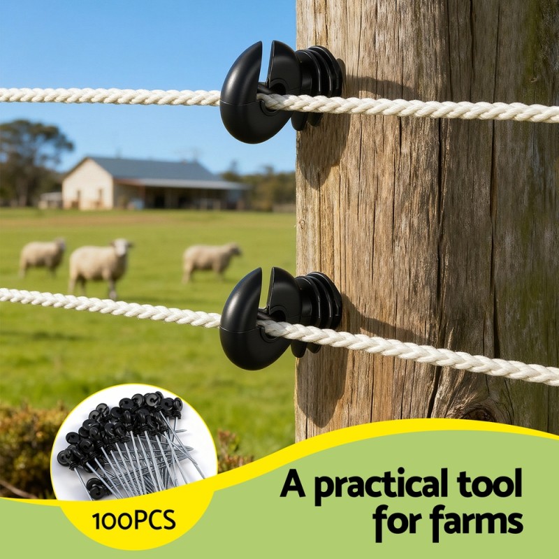 Enhance your electric fencing setup with the Giantz Electric Fence Ring Insulators. This comprehensive kit includes 100 high-strength, UV-resistant insulators, perfect for withstanding the harsh Australian climate. Designed for versatility, these insulators are suitable for wire, polywire, rope, and electric fence tape, making them ideal for use as start, end, corner, or line insulators. Crafted from durable black PP material, they ensure excellent insulation for secure attachment, making them an essential component for any electric fence system.