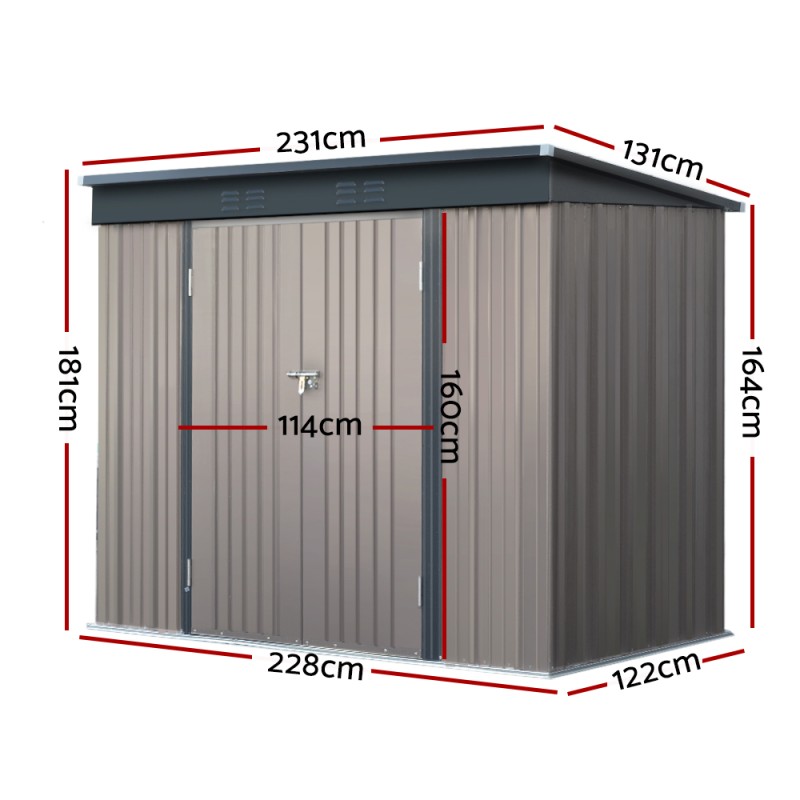 Discover the perfect storage solution with the Giantz Garden Shed, measuring 2.31x1.31M. Built to withstand the elements, this durable shed is crafted from galvanised steel and polypropylene, offering exceptional strength, corrosion resistance, and weatherproofing. Its spacious interior is ideal for housing your gardening tools and equipment, while four air vents ensure continuous airflow. The sloped roof efficiently drains rainwater, preventing pooling. With easy assembly and minimal maintenance, this shed features double doors for effortless access. Invest in the reliability and longevity of the Giantz Garden Shed today!
