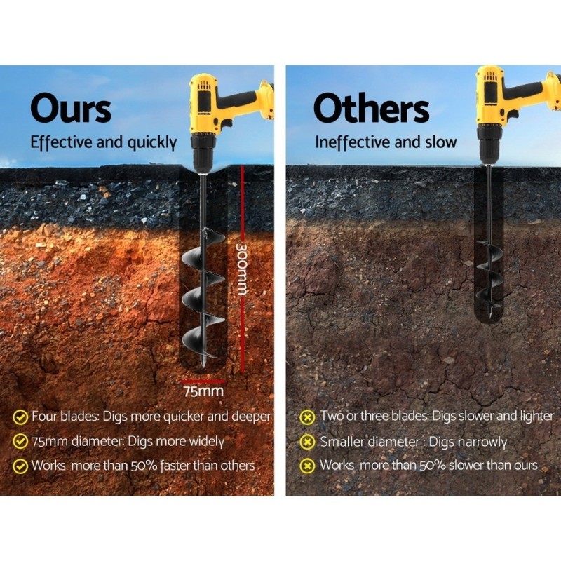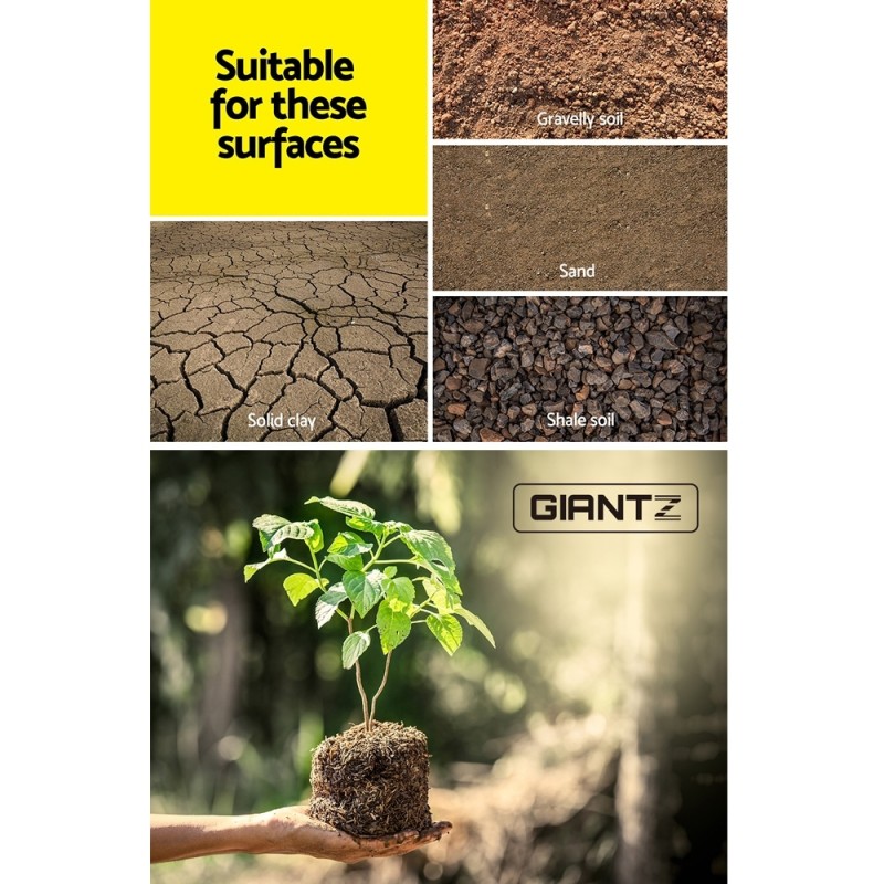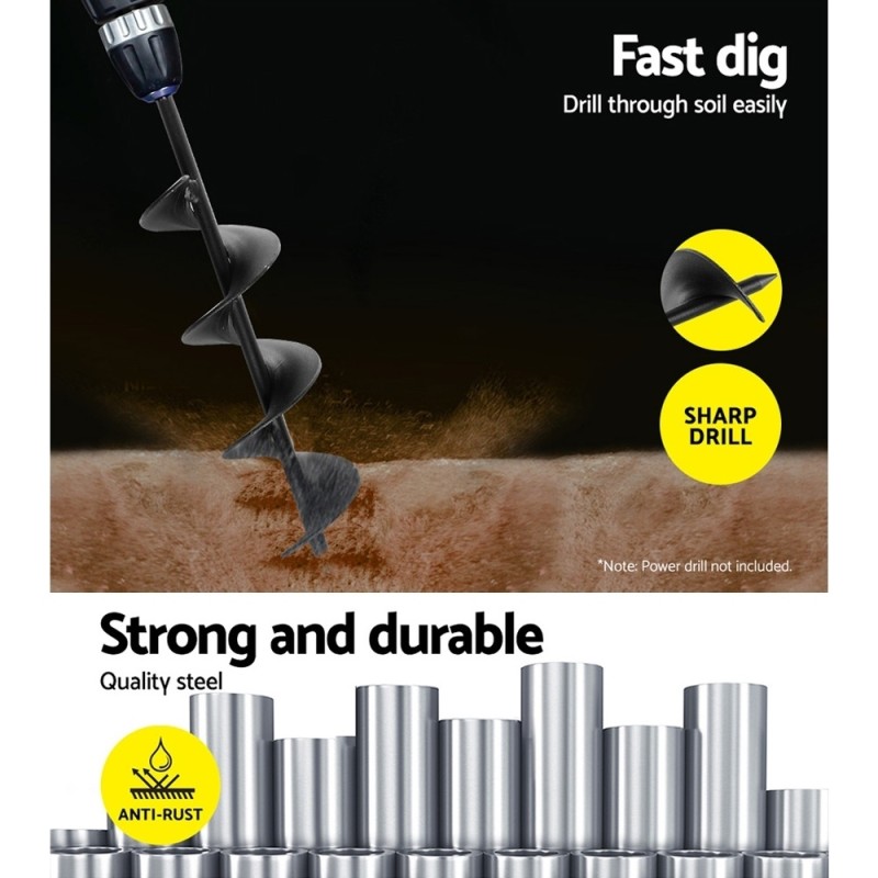 The GIANTZ Power Garden Auger Small Earth Planter 75 X 300MM in sleek black is your ultimate tool for efficient planting groundwork. Designed for robust performance, this auger is crafted from heavy-duty steel, ensuring durability and resilience against tough handling and rigorous drilling. It effortlessly digs up to 30cm deep with a 7.5cm diameter, making it ideal for various ground surfaces, including solid clay, gravel soil, sand, and shale soil. Compatible with most power drills, it fits perfectly into a 13mm chuck for seamless operation. Elevate your gardening game with this fast and efficient tool, backed by a 1-year warranty for your peace of mind.