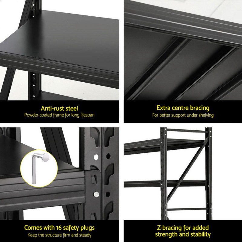 Conquer your storage woes with the Giantz 2.4Mx2M Warehouse Shelving Garage Rack! Crafted from industrial-strength steel, this heavy-duty storage rack features a reinforced frame and Z-bracing for unmatched stability. Each shelf holds up to 200kg, accommodating even the bulkiest items. Adjustable shelf heights and a rust-resistant coated finish ensure versatility and durability. Easy to assemble with included safety plugs for tipping prevention, it's perfect for your garage, workshop, or basement. Comes with a 1-year warranty.